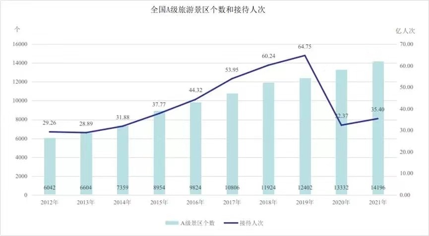 市场更加细分,A级旅游景区数量十年间增1.35倍 文化和旅游部产业发展司司长缪沐阳在“中国这十年”系列主题新闻发布会上指出,这十年的文化产业发展,可谓是“日出江花红胜火”,这十年的旅游产业发展,可谓是“春来江水绿如蓝”。我国文化产业和旅游产业已经成为经济增长的新动力、新引擎,在促进国民经济转型升级、提质增效、满足人民美好生活需要方面,发挥了重要作用。 数据显示,十年来,我国文化产业增加值从2012年的1.81万亿元增长到2020年的4.5万亿元,年均增速12.1%,占同期GDP的比重从3.36%上升到4.43%,文化产业已经成为经济增长的新动能和新引擎。而我国旅游及相关产业增加值从2014年的2.75万亿元增长到2020年的4.06万亿元,年均增速5.0%,旅游业作为国民经济战略性支柱产业的地位更加巩固。